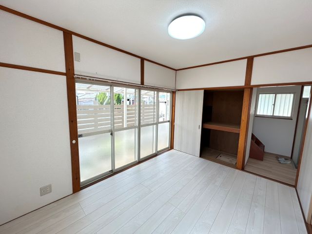 周囲空いて日当たり良好です!小、中学校近く明るい室内!駐車3~4台可(全部使用しなければ月極で貸せます)。